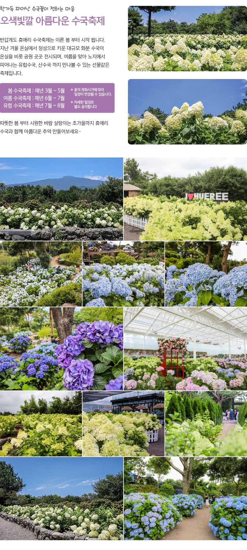 휴애리 수국축제 - 주소 : 제주특별자치도 서귀포시 남원읍 신례동로 256