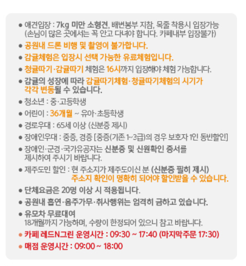 - 흑돼지 먹이 주기 체험 : 제주 전통 흑돼지에게 직접 먹이를 주며 교감할 수 있는 체험입니다.